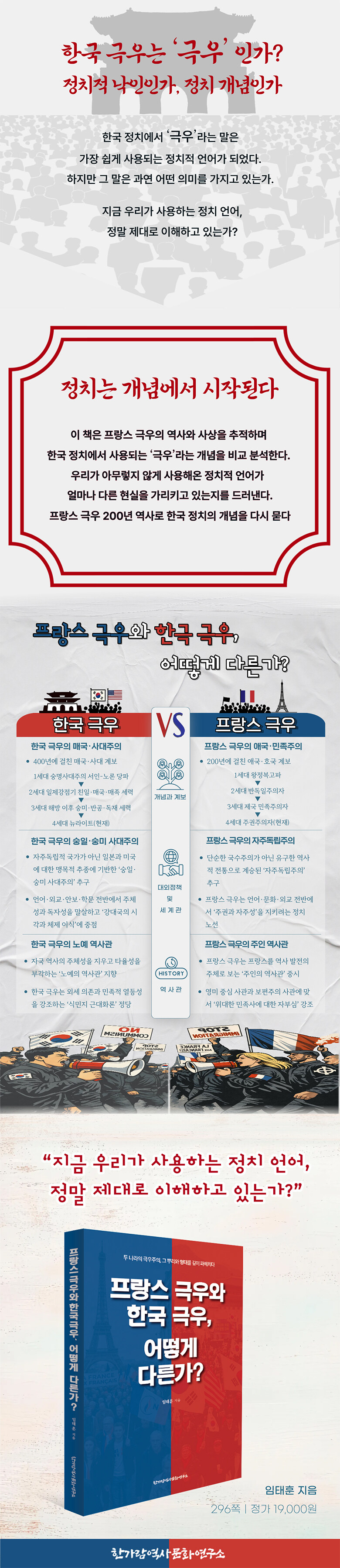 애국의 계보, 프랑스 극우 | 1세대 극우, 오를레앙 가문의 애국 전통 | 2세대 극우의 항독 민족 해방 투쟁 | 프랑스 극우의 애국 전통이 잘 알려지지 않은 이유 | 매국의 계보, 한국 극우 | 매국매족 정신의 근본 : 서인-노론의 사대주의 속물근성 | 사대주의를 친일매국으로 승화시킨 2세대 극우 | 해방 후 역사학계를 장악한 친일 매국 세력 | 친일 매국 계보의 패악과 유산