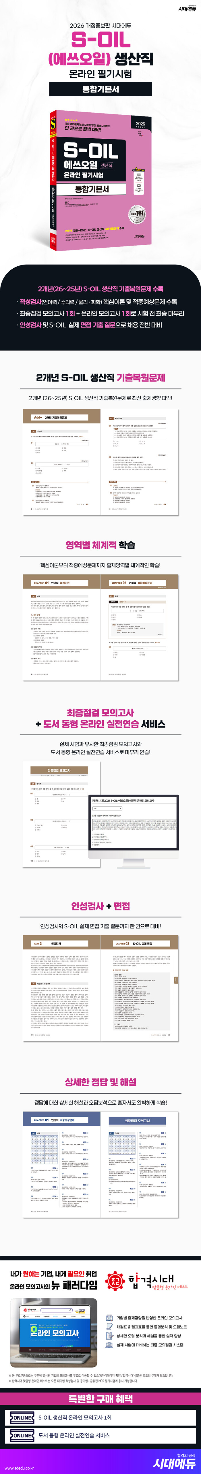 2026 개정증보판 시대에듀 S-OIL(에쓰오일) 생산직 온라인 필기시험 통합기본서