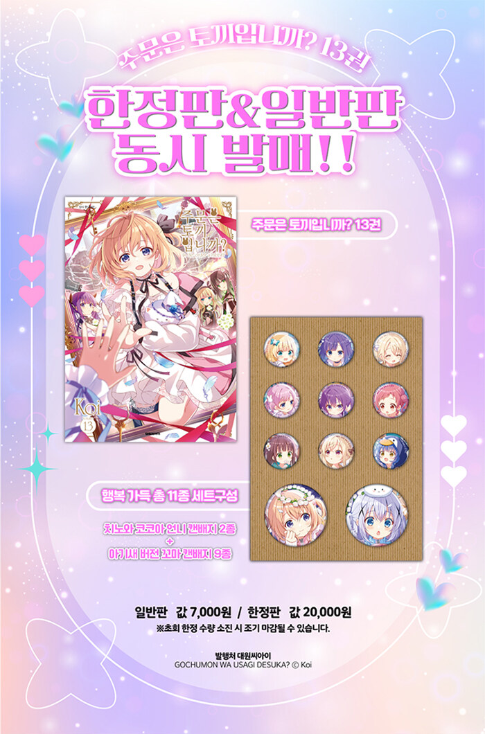 래빗 하우스에서 먹고 자고 일하는, 밝고 명랑하고 살짝 허당인 코코아. 그곳 사장님의 손녀딸로, 말투는 공손(?)하지만 태도는 더없이 쿨∼한 치노. 부잣집 아가씨이건만 어쩐지 군인의 향기를 풍기는 또 다른 알바생 리제. 코코아의 학교 친구이자 나긋나긋한 전통찻집 아가씨인 치야. 카페인에 취하는 특이체질을 가진 허브티 카페 알바생인 가난 소녀 샤로. 그리고 정체를 숨기고 있는 수상한 토끼 티피! 사랑스러운 친구들이 그려가는 카페스러운 일상♥